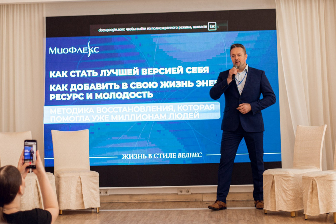 С темой «Как добавить в свою жизнь энергию, ресурс и лёгкость движения» выступил Александр Бринстер — партнёр МиоФлекс на Алтае, специалист по восстановлению. В своём выступлении он разобрал, почему напряжение в теле накапливается не только от нагрузок, но и от привычного образа жизни, и как это влияет на самочувствие, сон и уровень энергии.